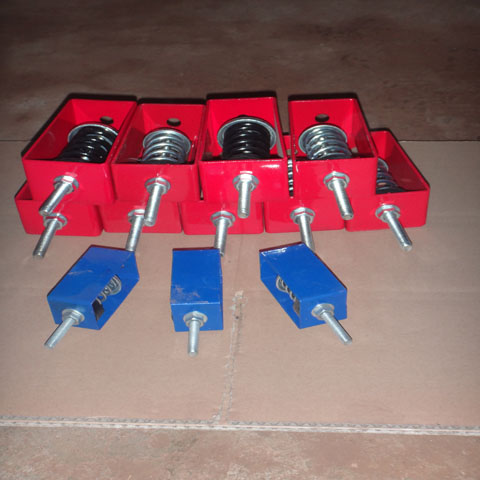 XHS型吊式彈簧減振(震)器:XHS型吊式彈簧減振(震)器用在風(fēng)機(jī)盤(pán)管等小型設(shè)備減振中,在中央空調(diào)安裝工程時(shí),風(fēng)機(jī)盤(pán)管的減振安裝可以改善風(fēng)盤(pán)的運(yùn)行狀況,延長(zhǎng)使用壽命,同時(shí)減少對(duì)周圍環(huán)境的噪聲和振動(dòng)污染。根據(jù)風(fēng)機(jī)盤(pán)管的實(shí)際安裝要求設(shè)計(jì)生產(chǎn)了HS型風(fēng)機(jī)盤(pán)管專用減振器,該產(chǎn)品具有阻尼大,自振頻率低,安裝方便,造價(jià)低廉,特別適用于對(duì)人居環(huán)境有較高要求的場(chǎng)所安裝使用。風(fēng)機(jī)盤(pán)管的減振安裝可參照,國(guó)家建筑標(biāo)準(zhǔn)設(shè)計(jì)圖集01(03)K403《風(fēng)機(jī)盤(pán)管安裝》。
